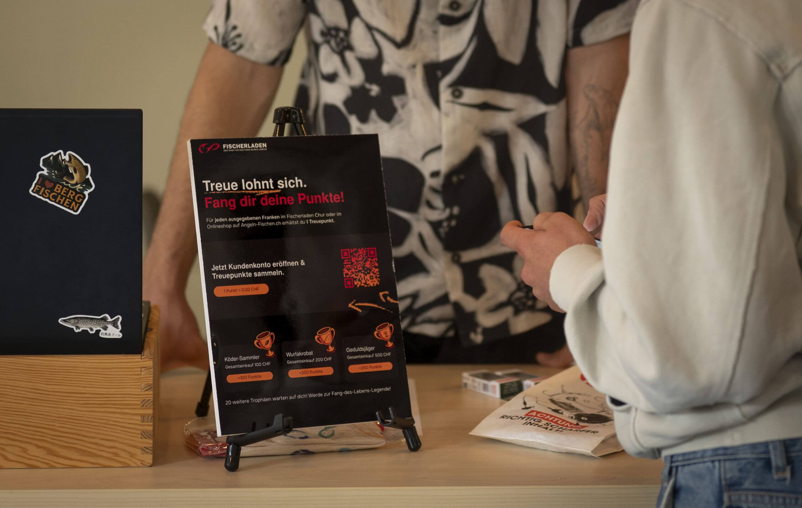 Wir sind kein grosses Unternehmen, sondern ein Familienbetrieb, der auf persönliche Beratung, ehrliche Empfehlungen und hochwertige Produkte setzt. Nachhaltigkeit ist für uns ein zentrales Anliegen. Wir achten auf eine sinnvolle Produktauswahl, langlebige Materialien und eine verantwortungsvolle Haltung gegenüber Natur und Mensch. Neben dem Laden in Chur betreiben wir auch einen Onlineshop unter angeln-fischen.ch, wo du rund um die Uhr stöbern und bestellen kannst. Dort findest du eine grosse Auswahl an Fischereiartikeln und Zubehör.